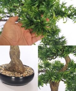 100cm Artificial Pine Bonsai Tree, Realistic Faux Plant with Green Leaves & Pot, Maintenance-Free & Water-Resistant Faux Tree, No Watering & Odorless Fake Plants for Home, Office Event Decor