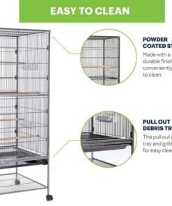 153cm Wrought Iron Standing Large Flight King Bird Cage for Cockatiels African Grey Quaker Amazon Sun Parakeets Green Cheek Conures Parrot Bird Cage Birdcage with Stand (X Large)