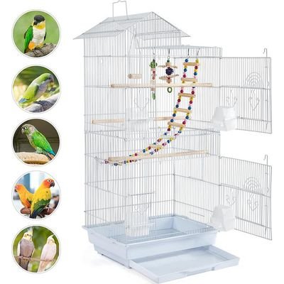 39-Inch Roof-Top Large Flight Bird Cage for Small Quaker Parrots, Cockatiels, Sun Parakeets, Green Cheek Conures, Budgies, Finches, Lovebirds, and Canaries. Perfect for Pet Birds! (White)