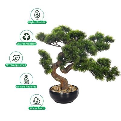 40cm Artificial Japanese Pine Bonsai Tree, Lifelike Faux Tree with Green Leaves & Pot, Maintenance-Free & Long Lasting Faux Plants, Odorless & Waterproof Fake Plants Event, Office & Home Decor