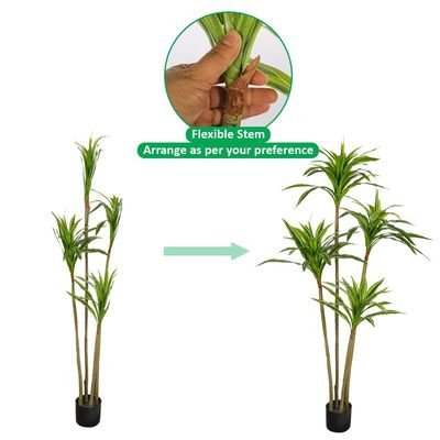 5.2ft Artificial Dracaena Plant, Nearly Natural Silk Plants with Pot, Fake Flowers with Green Leaves & Flexible Stems, Maintenance-Free & Long Lasting Faux Plants for Home Office Event Decor