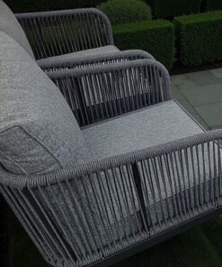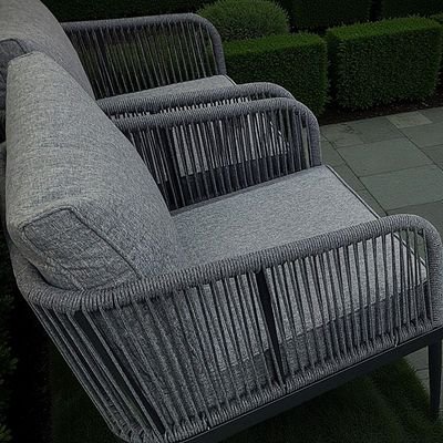 5-Seater Modern Rope Design Outdoor Sofa Set – Black Aluminium Frame with Grey Cushions