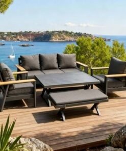 7-Seater Premium Dark Grey Aluminum Outdoor Sofa Set with High Table – Dark Grey Cushions