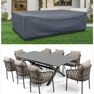 8-Seater Fillia Outdoor Dining Set Proetction Cover – L330xW180xH80cm – Grey