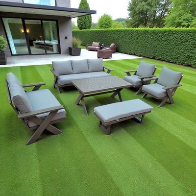 9-Seater Cross Legs Dark Grey Aluminium Garden Sofa with Big Table