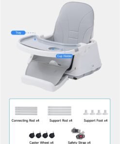 AL-WAHA AL-ZHABIA 4-in-1 Multi-Function Baby High Chair with Adjustable Height and Footrest | Double-Layer Food Tray, 360° Wheels & Safety Belt | Infant Feeding Chair for Babies 6 Months to 3 Years (Gray)