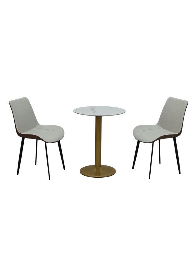 ALWASIT HOME Stork 3-Piece Square Dining Set | Sturdy Kitchen Dining Table With 2 Dining Chairs | 1+2 Seater Modern Design Furniture For Home, Dining Room – 60x60x75 White/Mable