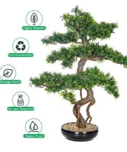 Artificial Bonsai Tree, Lifelike Faux Plants with Green Leaves & Pot, Maintenance-Free, No Watering, Long Lasting Faux Tree, Odorless & Waterproof Fake Plants for Home Office Event Decor (85cm)