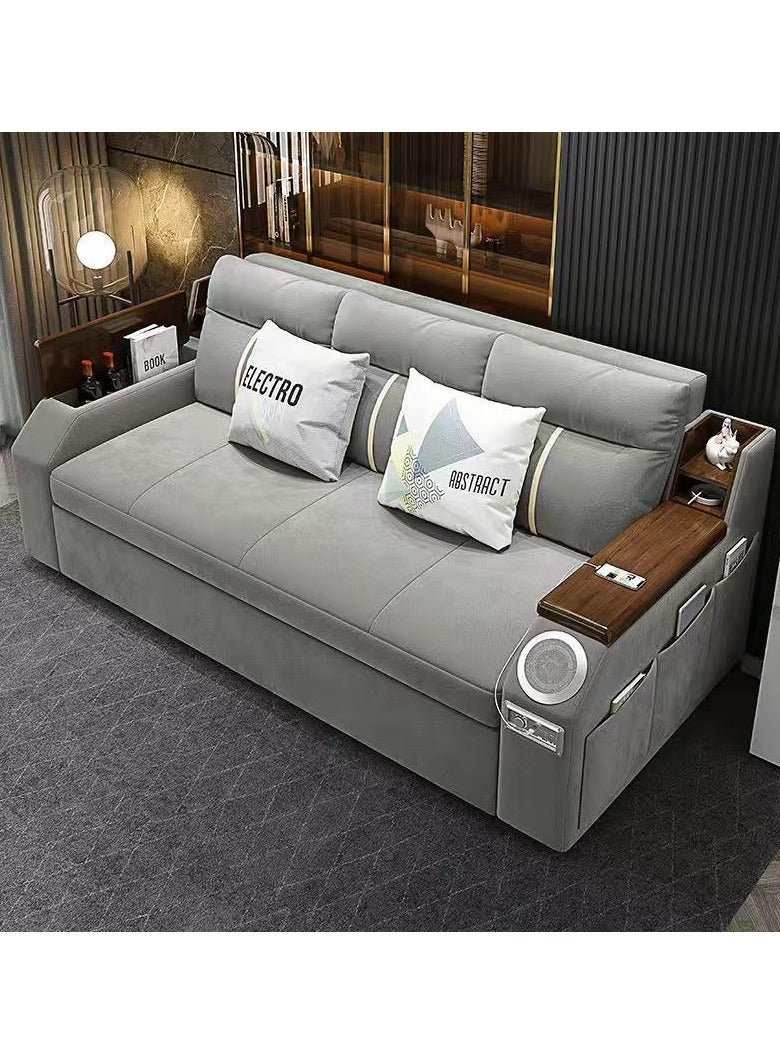 AWD Modern Extendable 2 in 1 Sofa Bed with Side Pockets, Daybed with Bottom and Side Storage, USB Ports, Bluetooth, Speaker. Sofa Bed for Living Room Bedroom Small Spaces Home Furniture.
