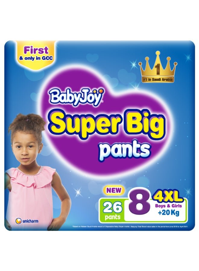 BabyJoy Pants Diapers, Size 8, 20+ Kg, 26 Count – 4XL, Boys And Girls