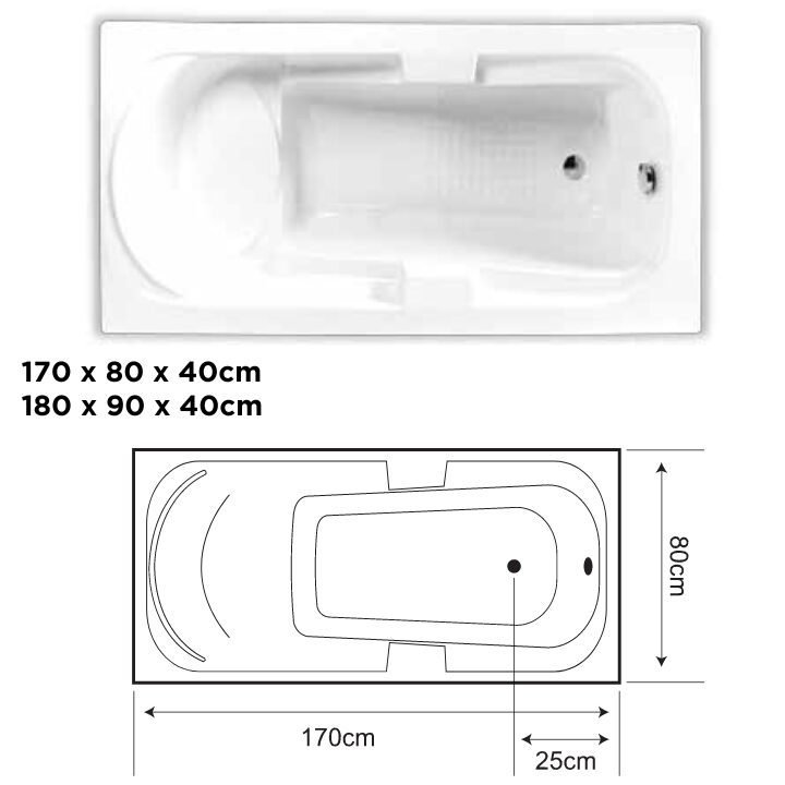Blossom inset tub seat – unveil tranquility with options in 170x80x40cm and 180x90x40cm dimensions, perfectly crafted for a serene bathing retreat