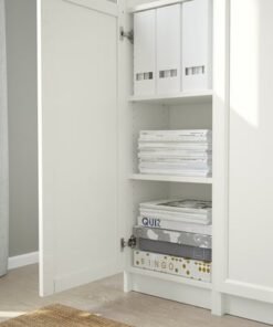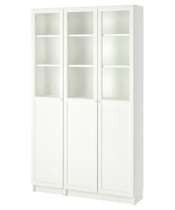 Bookcase with panel/glass doors, white/glass, 120x30x202 cm