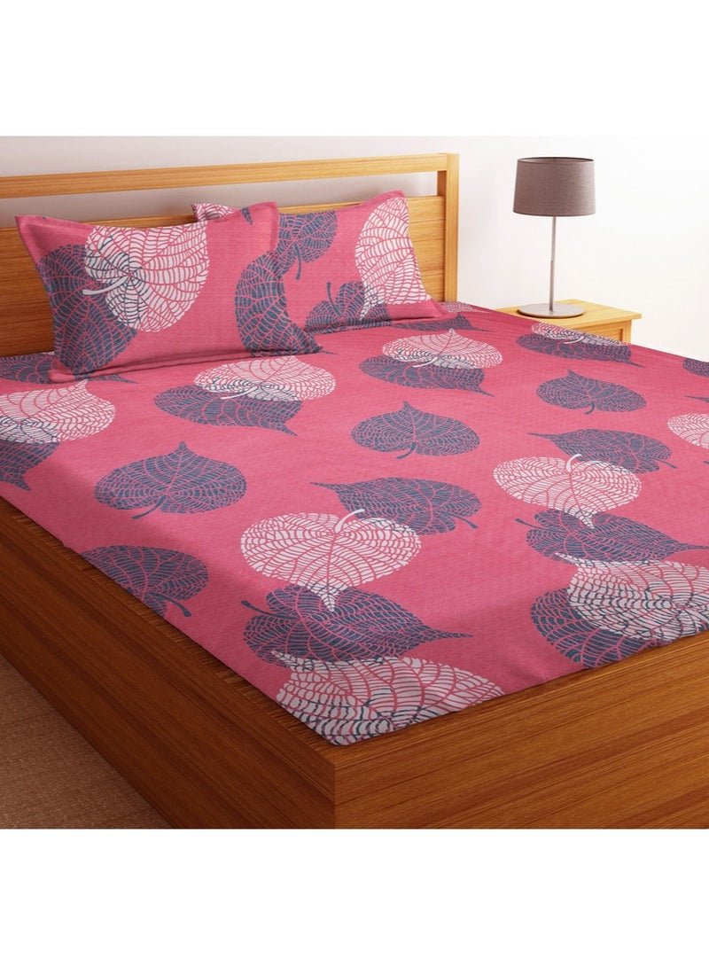 BSB HOME Premium Glace Cotton 180 TC KING Fitted Bedsheet Set – with 2 Pillow Covers 183×198 +25 cm(72×78 + 10 inches & 18×28 inches) – Pink