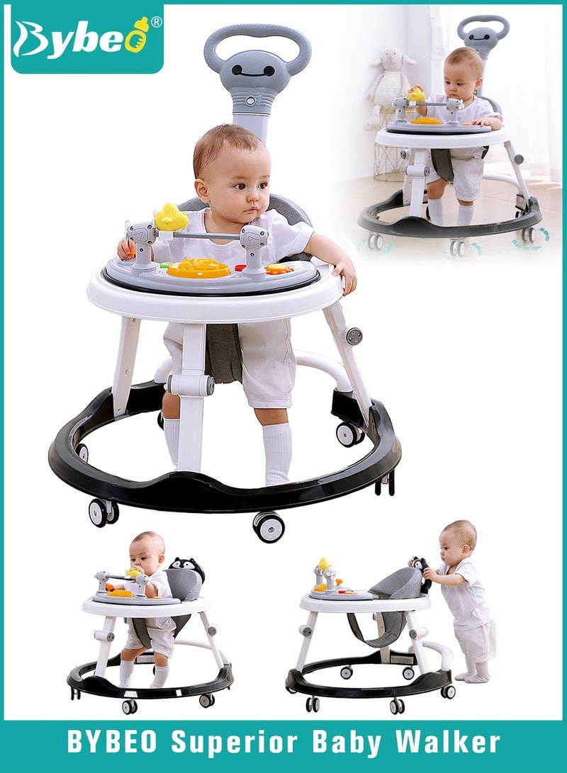 Bybeo 3 in 1 Baby Walker With Parent Push Handle, Children Walkers with Wheels, Adjustable Height Multifunction and Big Comfortable Seat Cushion, Detachable Trampoline Mat for Infants Boys Girls
