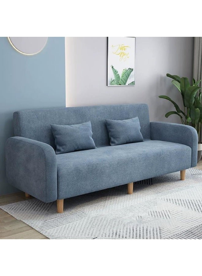 Comfynest Seats 3 Modern Small Solid Wood Frame Foam Filled Sofa With Square Arm – Flannel 150 X 65 X 75 Cm Blue
