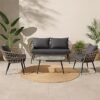 Deep Sleep 5-Piece Rattan Outdoor Furniture Set with Ottoman & Side Table | Space-Saving Patio Chairs with Footrest | PE Wicker Garden Seating Set for Balcony, Terrace, Lawn & Poolside| Brown
