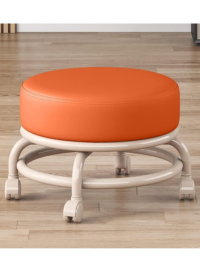 DubaiGallery Round Rolling Stool with Wheels Comfortable, Heavy Duty, 360° Rotation, Low Profile, Elegant Design for Home or Office Use