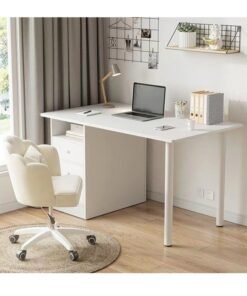 fashionhome Modern Design Computer Desk Simple Rectangular Writing Study Table with Storage Drawers Workstation Table for Bedroom Home Office 120x48x73 cm