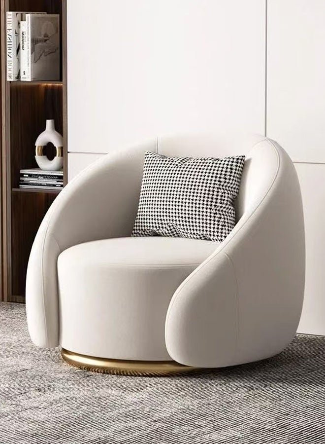 fashionhome Modern Luxury Swivel Lounge Chair with Sculptural Curved Backrest, Smooth Cream Upholstery, and Elegant Brushed Gold Base – A Contemporary Statement Piece Combining Comfort, Style, and Functionality for Living Rooms, Bedrooms 86 x 80 70 cm.