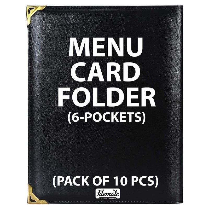 Filemate A “CLASSIC” Products Filemate MENU Card Folder (6-Pockets) (Pack of 10 pcs) / Holder for Restaurants or Hotels (A4 Size: 31.1 x 25.4 cm) (Black)