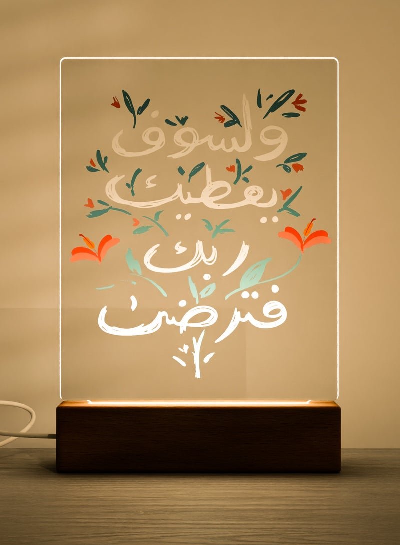 GALADUNE Creative Acrylic LED Night Light with Wooden Base, USB Powered Home Decor Table Lamp, Flower & Blessing Design Gift for Bedroom, Living Room, Party Decoration