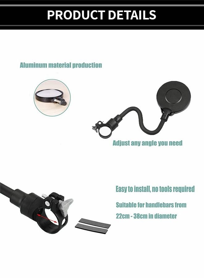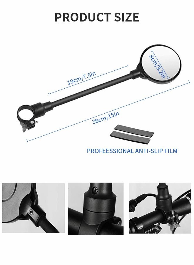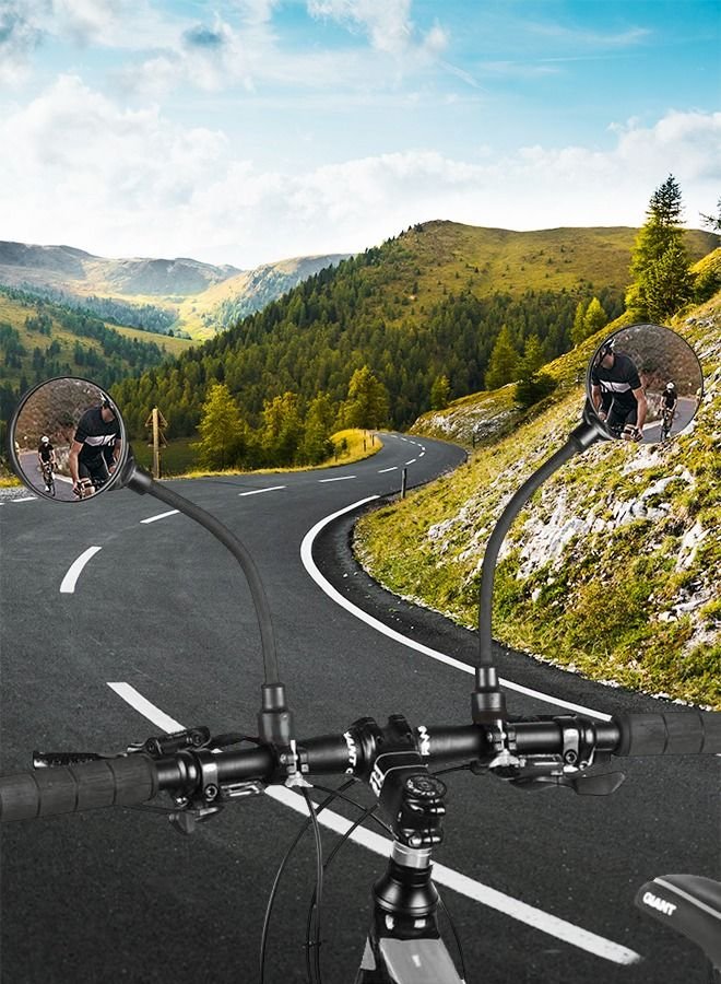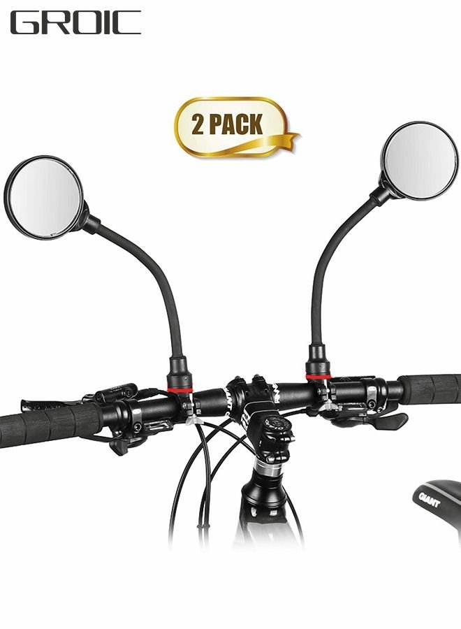 GROIC 2 Pack Bicycle Rearview Mirror 360° Adjustable Bending Handlebar Bike Mirror Wide Angle Rear View Mirrors Rotatable Acrylic Convex Mirror for Ride Safely Electric Bicycle Moped Cycling