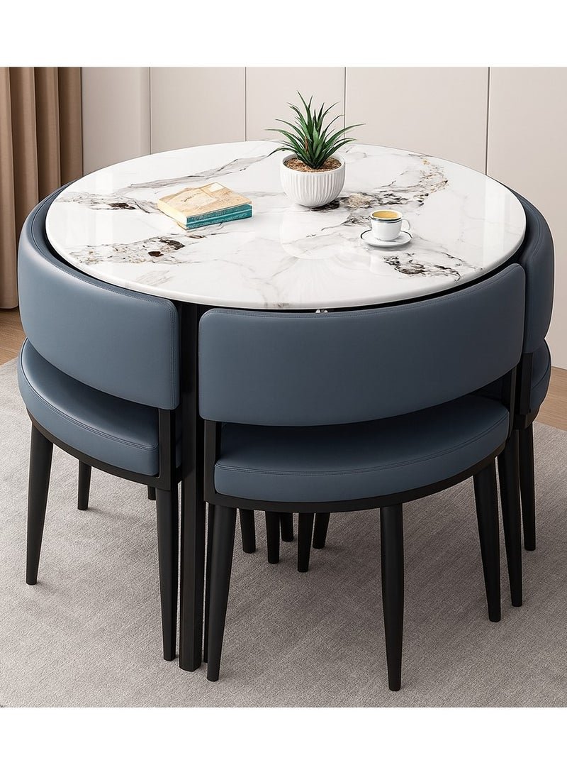 Harmony Home 5-Piece Round Dining Table Set – White Ceramic Marble Top with Metal Legs & 4 Blue PU Leather Cushioned Chairs – Modern Dining Furniture for Kitchen & Small Spaces