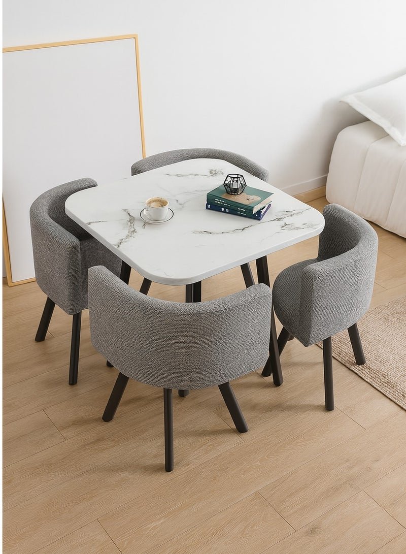 Harmony Home 5-Piece Square Dining Table Set – marble-textured top Table with 4 Upholstered PU leather Chairs, Small Dining Room Furniture