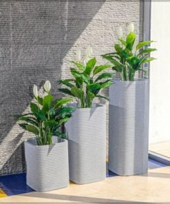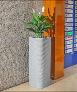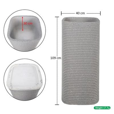 Heavy-Duty Plant Pot, Ribbed Concrete-Look Tall Planter Pot with Drainage Holes, Lightweight & Weather-Resistant Flower Vase Suitable for Succulents, Herbs, Garden Pot for Home Office (Large)