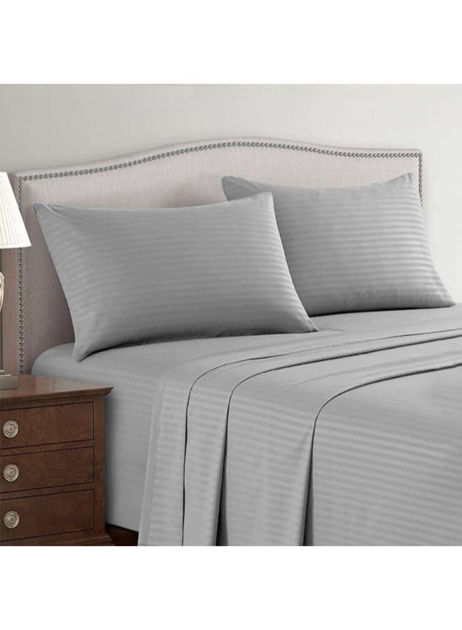 Hotel Linen Klub 3-Piece King Bed Sheet Set – 100% Cotton Sateen Stripe Patterned – Size: 260x280cm + 2 Pillowcases 50×75 cm – Ultra-Soft, Luxury Hotel Collection Cotton Silver