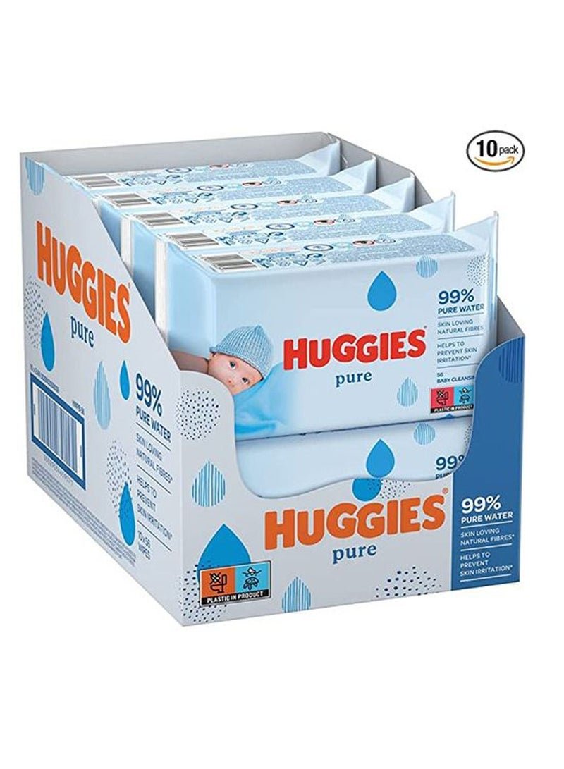 HUGGIES Pure Baby Wipes With 99 Percentage Pure Water for Sensitivity (Pack of 10)