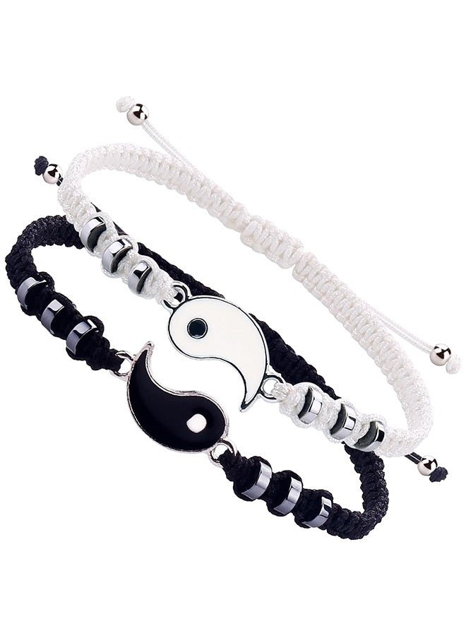 HY Best Friend Bracelets for 2 Matching Yin Yang Adjustable Cord Bracelet for Bff Friendship Relationship Boyfriend Girlfriend Valentines Gift