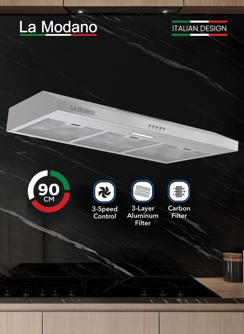 LA MODANO Slim Stainless Steel 90cm Built-In Kitchen Hood with 3-Speed Control, LED Lighting, and Carbon Filter- LMCH906S