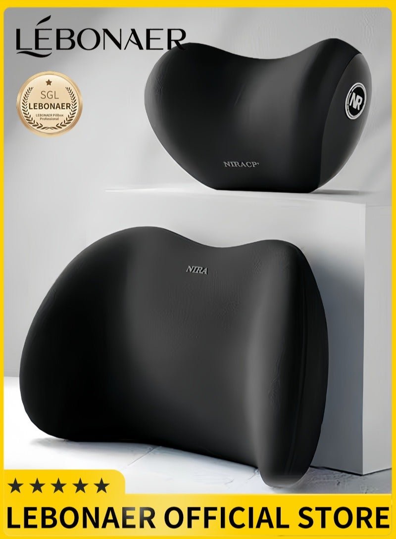 lebonaer Car Pillow Neck & Back Pillow Set,Neck & Lumbar Support Pillow for Chair,Car Seat,Wheelchair,Gaming,Office Chair,Enhanced Comfort Memory Foam Headrest & Back Cushion(Black)