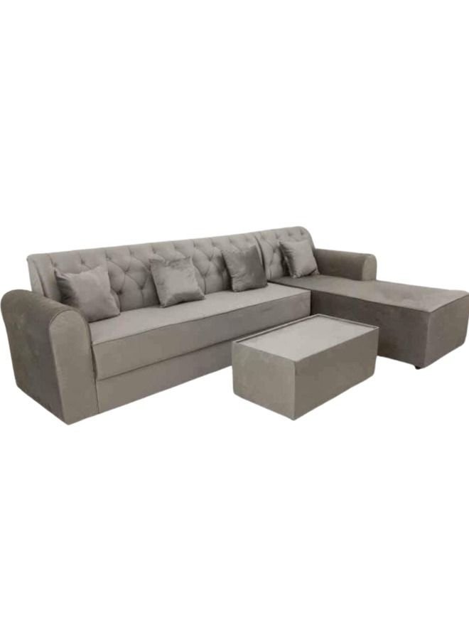 Maharat Al Bahar L Shape Mab Sofa Set 5 Seaters With Table & Pillow Beige 250x80x80