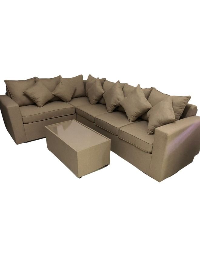 Maharat Al Bahar L Shape Sofa Set With Table & Pillow Beige 5 Seater 180x80x80