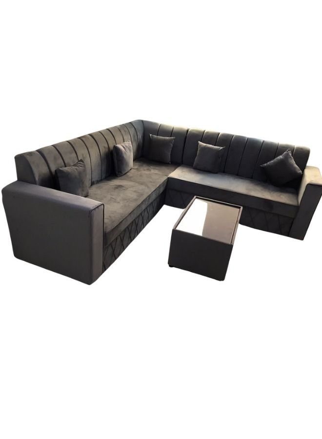 Maharat Al Bahar L Shape Velvat Sofa Set with Cushion & Table- dark gray/ -250X80X80