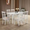 Mahmayi Modern Wooden 4-Seater Dining Table Only – Stylish White Levanto Marble Finish for Kitchen, Dining Room, Living Room