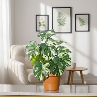 Mini White Monstera Potted Plant 17 Lvs 51Cm