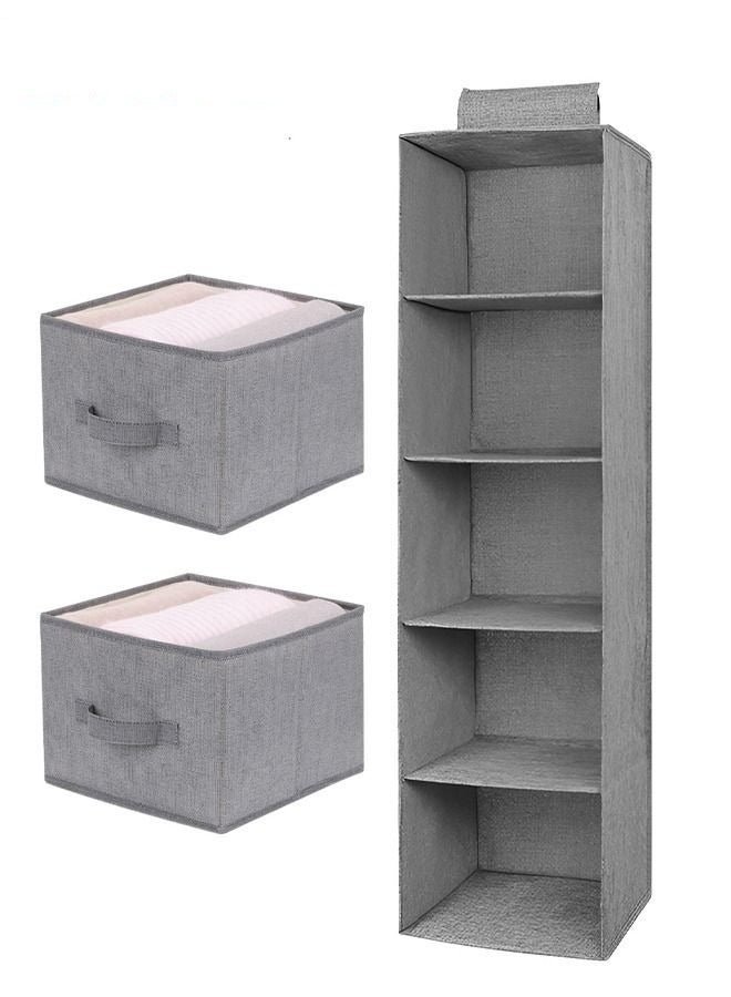 MIXDE 5-Shelf Hanging Closet Organizer,Hanging Shelves For Closet With 2 Removable Drawers,Hanging Shelf Organizer For Bedroom Or Garment Rack