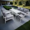 Modern Aluminium Outdoor Corner Sofa Set – White Frame with Grey Cushions