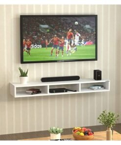 MODERN HOME Wall-Mounted TV Unit & Cabinet –White Wood Modern Design for Living Room
