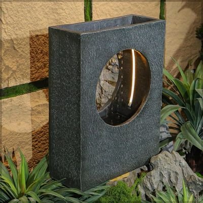Modern Tabletop Fountain, Polyresin & Fiberglass Waterfall Fountain, Electric Water Fountain with LED Light, Freestanding Fountains for Indoor & Outdoor Decor, Ideal for Home, Office, Gardens