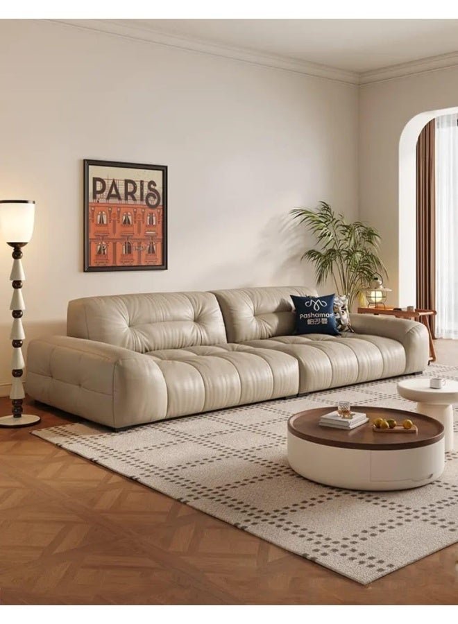 Modern Tufted Leather Sofa – 4-Seater, Beige