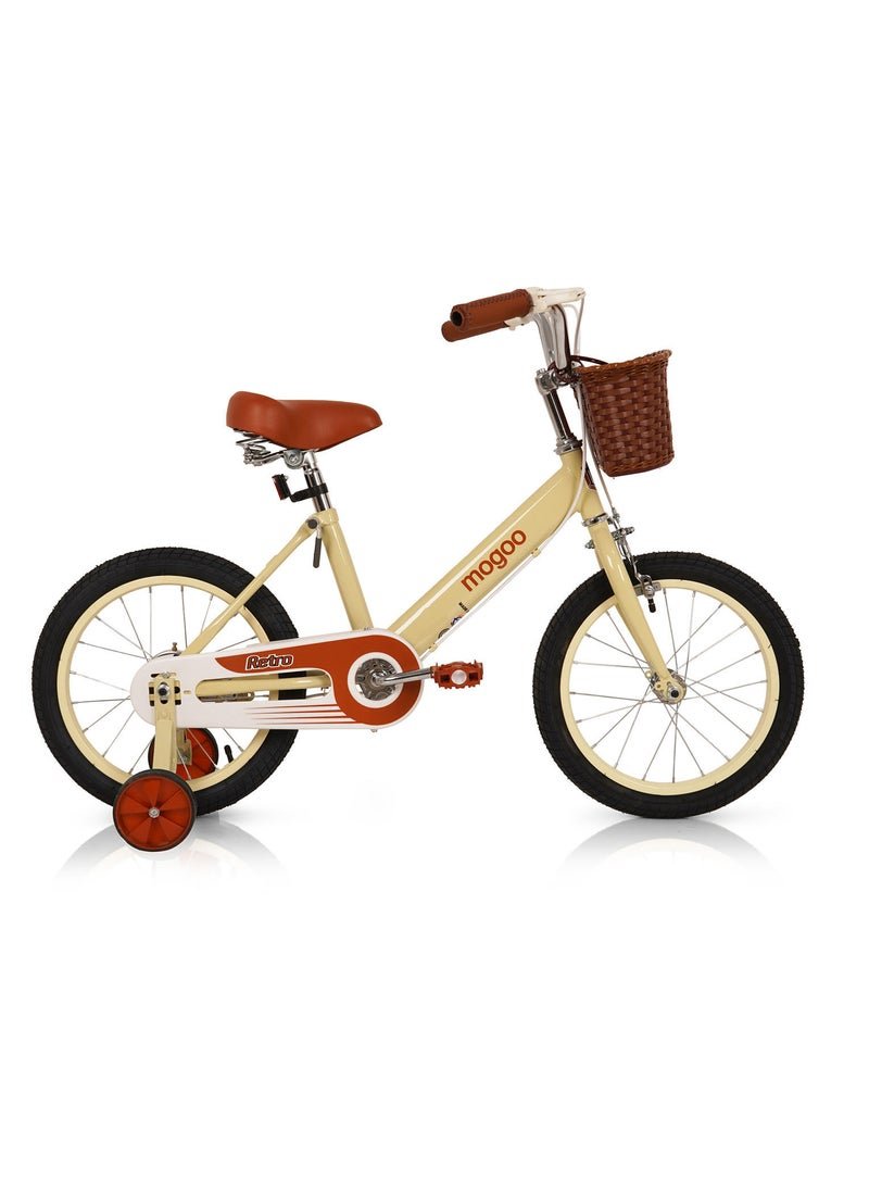 MOGOO Kids Retro Classic Style Vintage Basket Road Bike With Training Wheels For 5-8 Years 16 Inch Beige