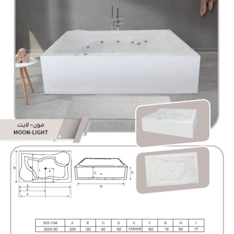 Moon-light Acrylic Freestanding Jacuzzi Bathtub – 200 × 120 cm (Glossy White)