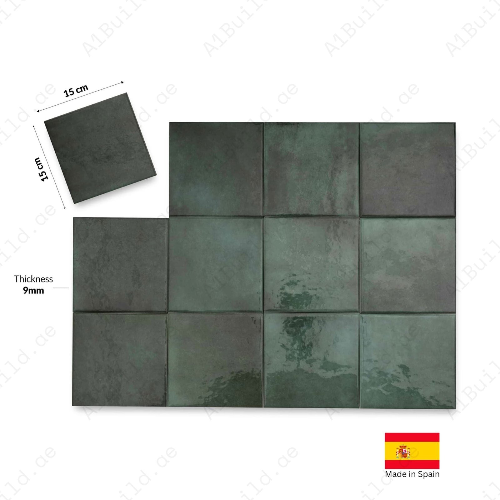 Moss Green Glossy 15x15cm Spanish Porcelain Tiles – Indoor & Outdoor