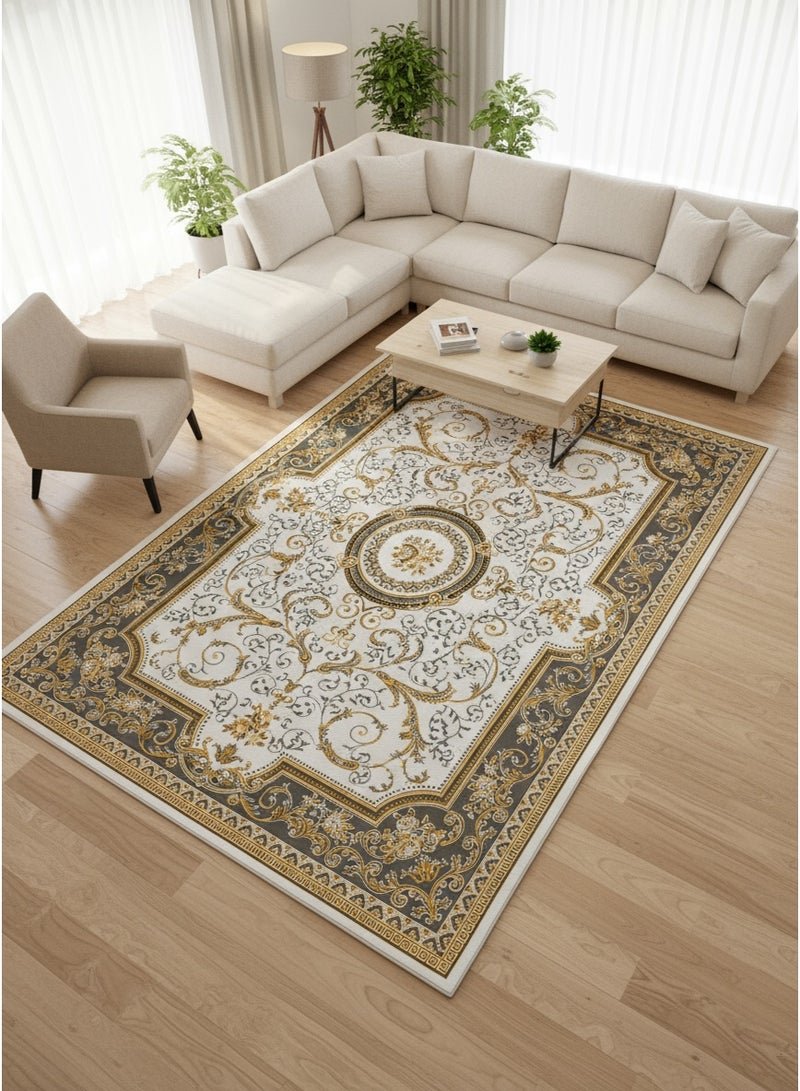 Noon East Carpet Rug with Anti- Slip backing | Royal Heritage Design – Beige | Size – 200×290 cm – 6.5×9.5 ft | For Living space , Master Bedroom, Dinning room & Large office space