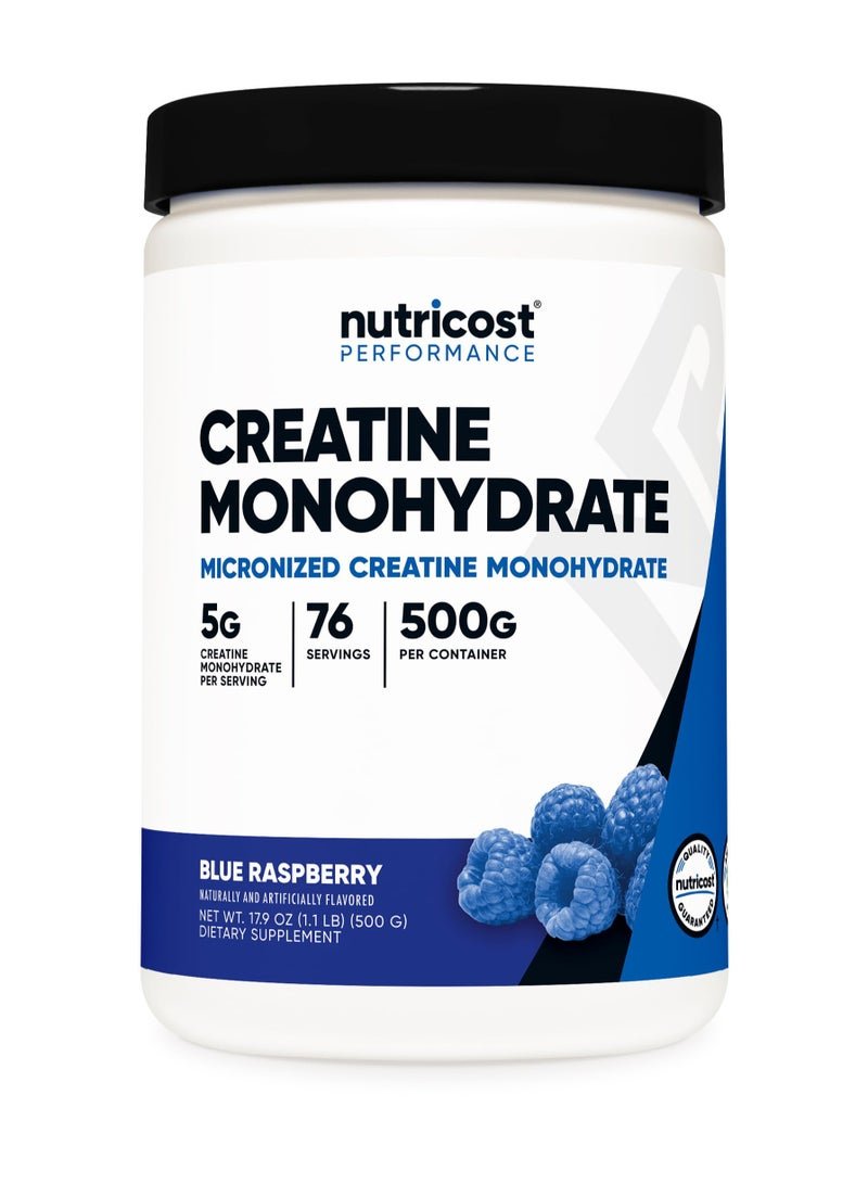 Nutricost Creatine Monohydrate, Micronized Creatine Monohydrate, 5G Creatine Monohydrate Per Serving, 76 Servings, 500G Per Container, Blue Raspberry, Net Wt. 17.9 Oz,(1.1 LB) 500 G- naturally and artiffially flavoured