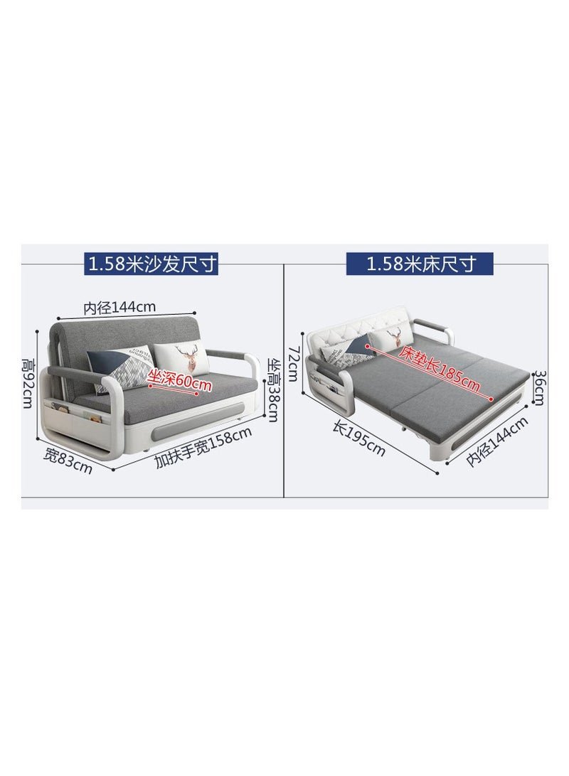 Organized Home Pull-Out Foldable Sofa Bed with Storage Space Double-Seat Multi-Functional Sofa, Modern Style Living Room and Bedroom Comfortable Sofa Bed Chair (Width1.58m)